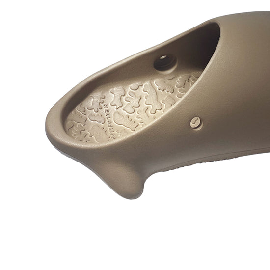 Las hendiduras cerca de los dedos en la plantilla ayudan a que los dedos se mantengan sueltos, se extiendan naturalmente y apoyen su movimiento de rodar.